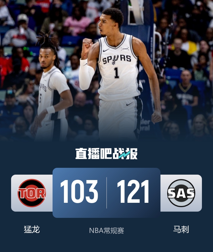 首节对决马刺展现近期火热状态,文班亚马开局连拿8分带队轰出27-10的攻势早早拉开领先优势,第一节他们狂轰41分并拿到12分的领先;次节马刺依旧压制着对手一直保持着两位数领先,上半场马刺6人拿到8+得分多点开花并取得19分领先进入下半场。休息归来马刺状态不如上半场那般强势,猛龙则不断冲击对手防线并在第四节追至8分看到希望,不过最后时刻卡斯尔联手巴恩斯命中三记三分稳住局势奠定胜局。最终,马刺主场轻取猛龙收获开季4连胜。